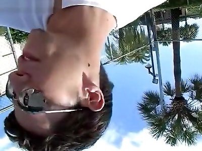 alluring cutie corre su pulsing manstick e si limita su di esso rapido
