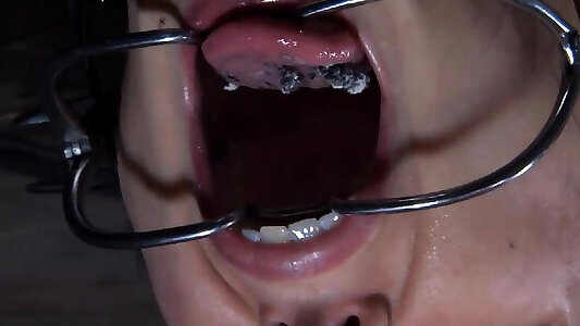 teenie tatuata imbavagliata e legata in corsetto torturata da numerose eiaculazioni