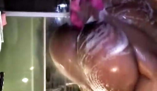 grande culo plus-size che si estende il suo manicotto per il lavaggio giorno