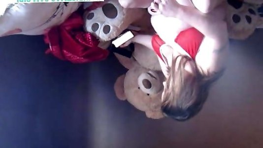 milf in lingerie rossa si masturba il suo stretto figa rasata in cam