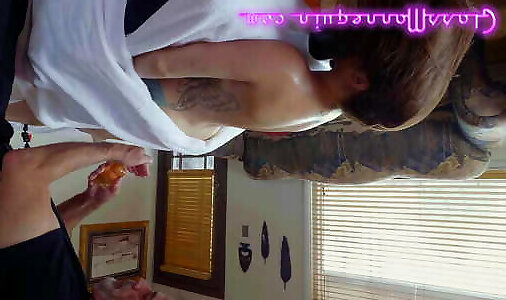 fidanzato pestate oliato pawg gf in stretto micio a fontana orgasmo e cum dentro!