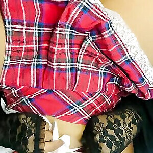 teenie scuola insegnante dà femminile dom lavoro di mano su scintillante calze in tacchi a spillo