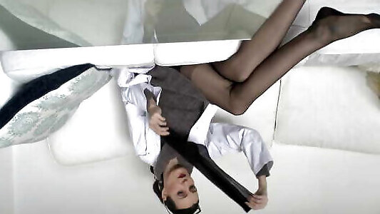 college girl allunga le gambe sotto la scrivania mentre studia e gioca con linsegnante & 039;s cazzo
