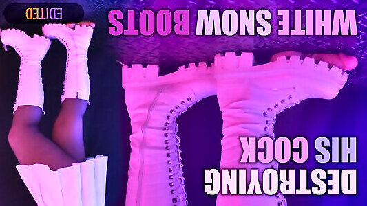 distruggendo il suo cazzo in stivali da neve bianchi, aggressivo cbt, bootjob e post orgasmo con tamystarly-faphouse esclusivo