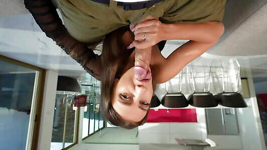 чрезвычайно смазанный минет, пускающая слюни шлюха сосет член до самого стебля