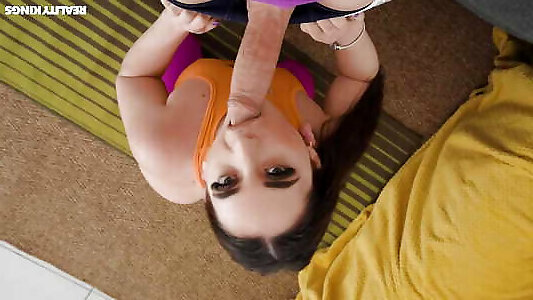 пронырливая студенческая шлюха отсасывает у королей реалити-шоу на свидании с милфой